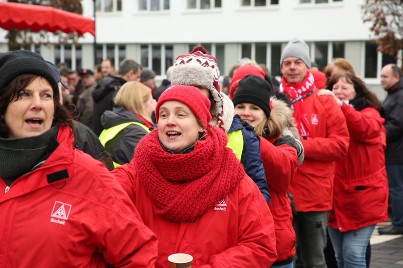 Besuch erhielten die Metaller aus vielen anderen Betrieben auch aus anderen Branchen und auch eine Delegation der Bezirksleitung der IG Metall war vor Ort. Im gut besuchten Streiklokal „Zur Glocke“ konnten sich alle Streikenden aufwärmen und mit Kaffee, Brötchen und Suppe versorgen.