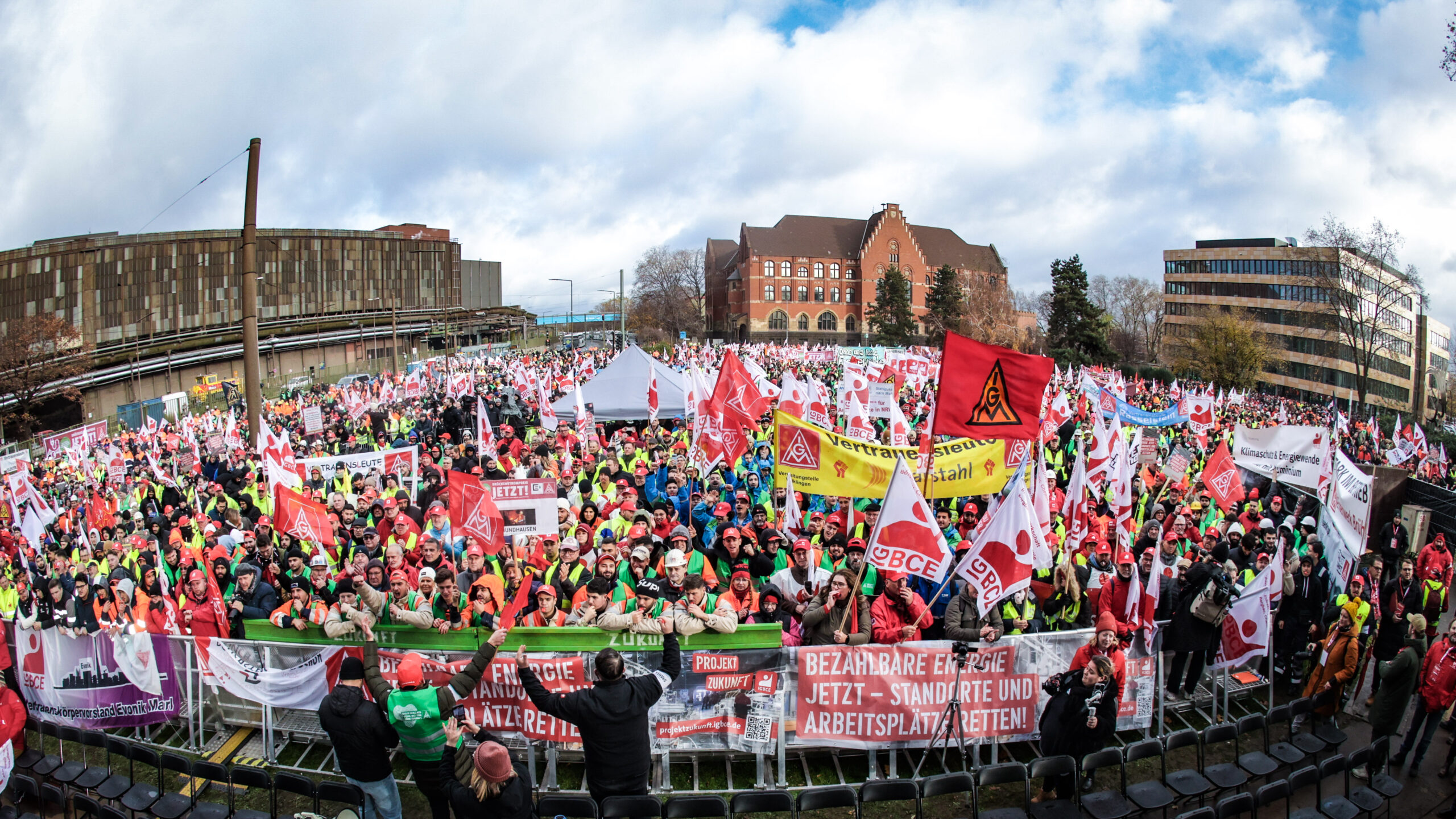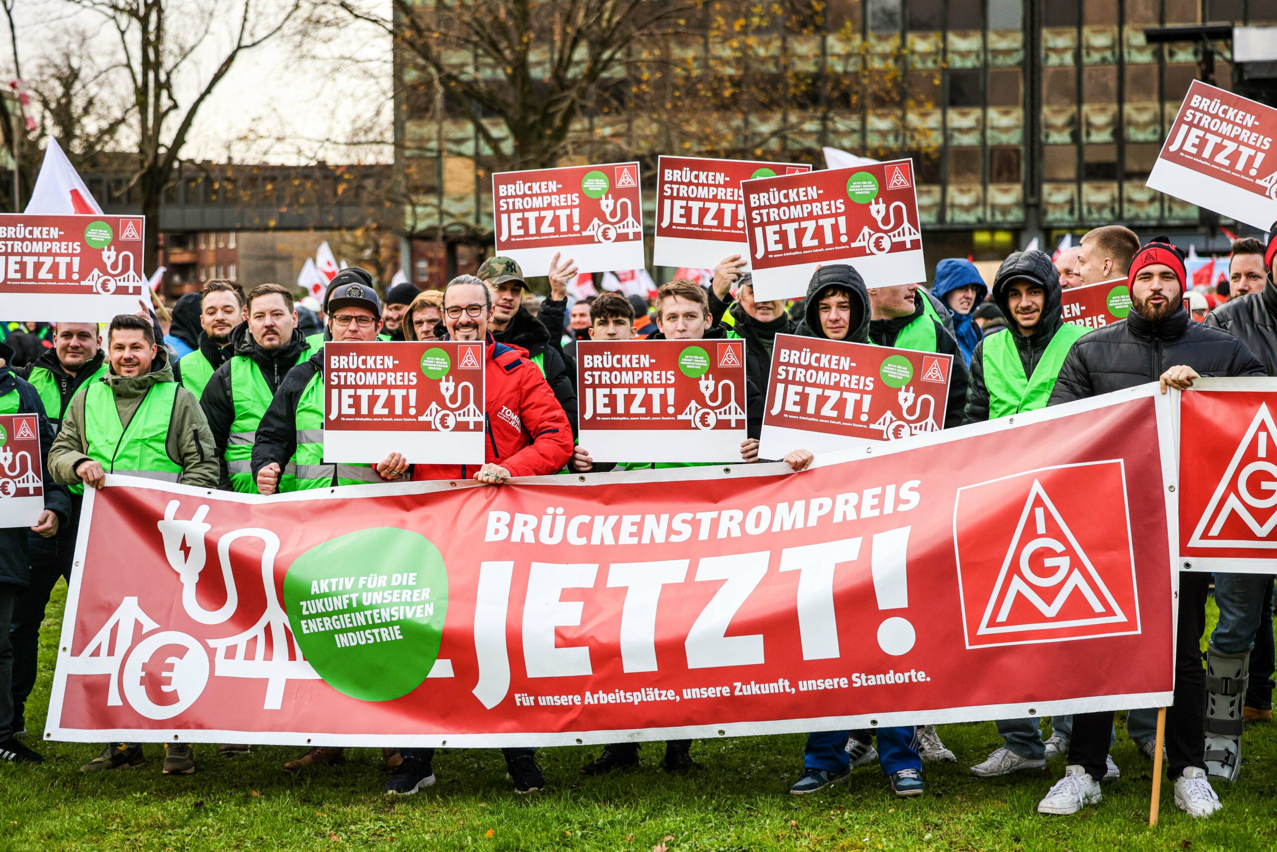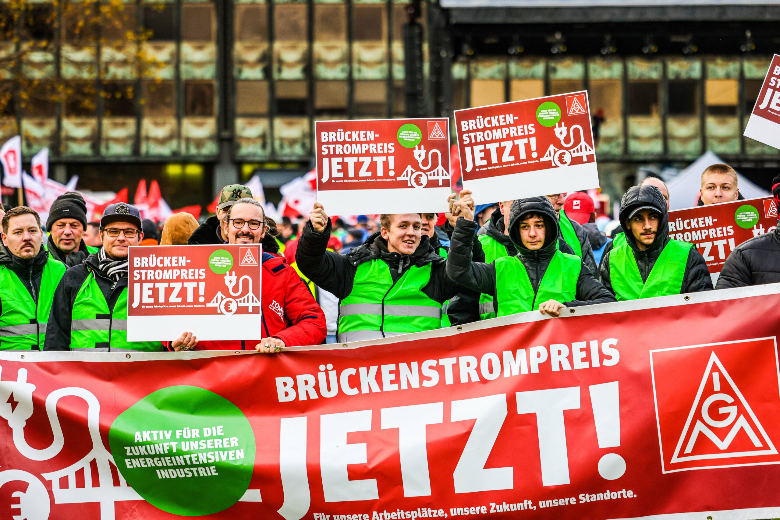 In Duisburg haben 10.000 Beschäftigte aus ganz NRW für die Zukunft ihrer Jobs demonstriert. Unter dem Motto „Brückenstrompreis jetzt!“ forderten sie die Bundesregierung auf, den Strompreis für Betriebe der energieintensiven Industrie zeitlich befristet auf fünf Cent pro Kilowattstunde zu deckeln, da andernfalls Stellenabbau und Verlagerung drohen.
