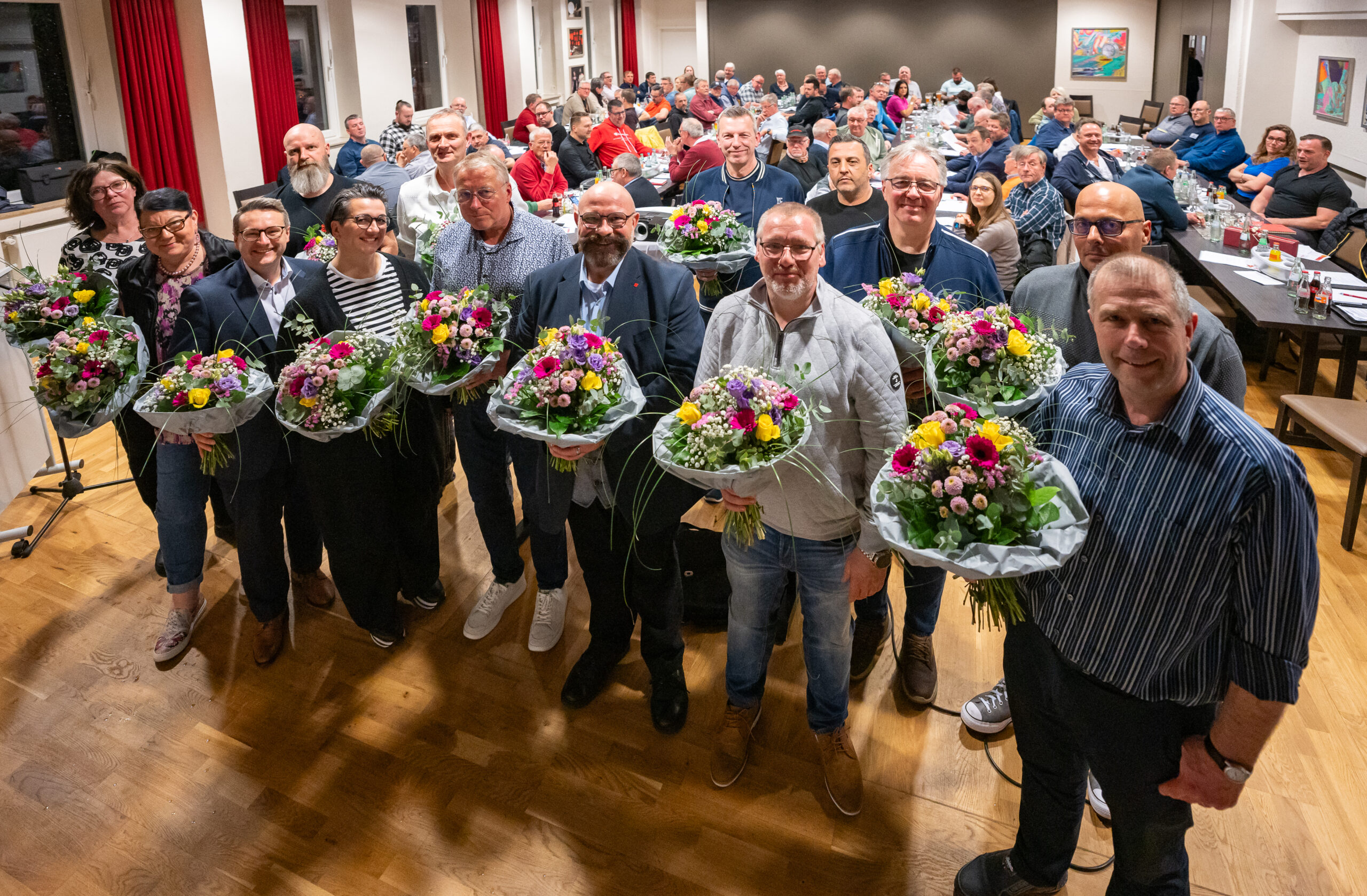 Der Ortsvorstand besteht, neben dem 1. Bevollmächtigten und Kassierer Benjamin Pankow (Mitte) und dem 2. Bevollmächtigten und zugleich ehrenamtliches Mitglied im Vorstand der IG Metall, Jürgen Bosse, Firma Flender GmbH aus 13. Beisitzer/innen aus Betrieben, die von der Geschäftsstelle betreut werden. Diese sind: