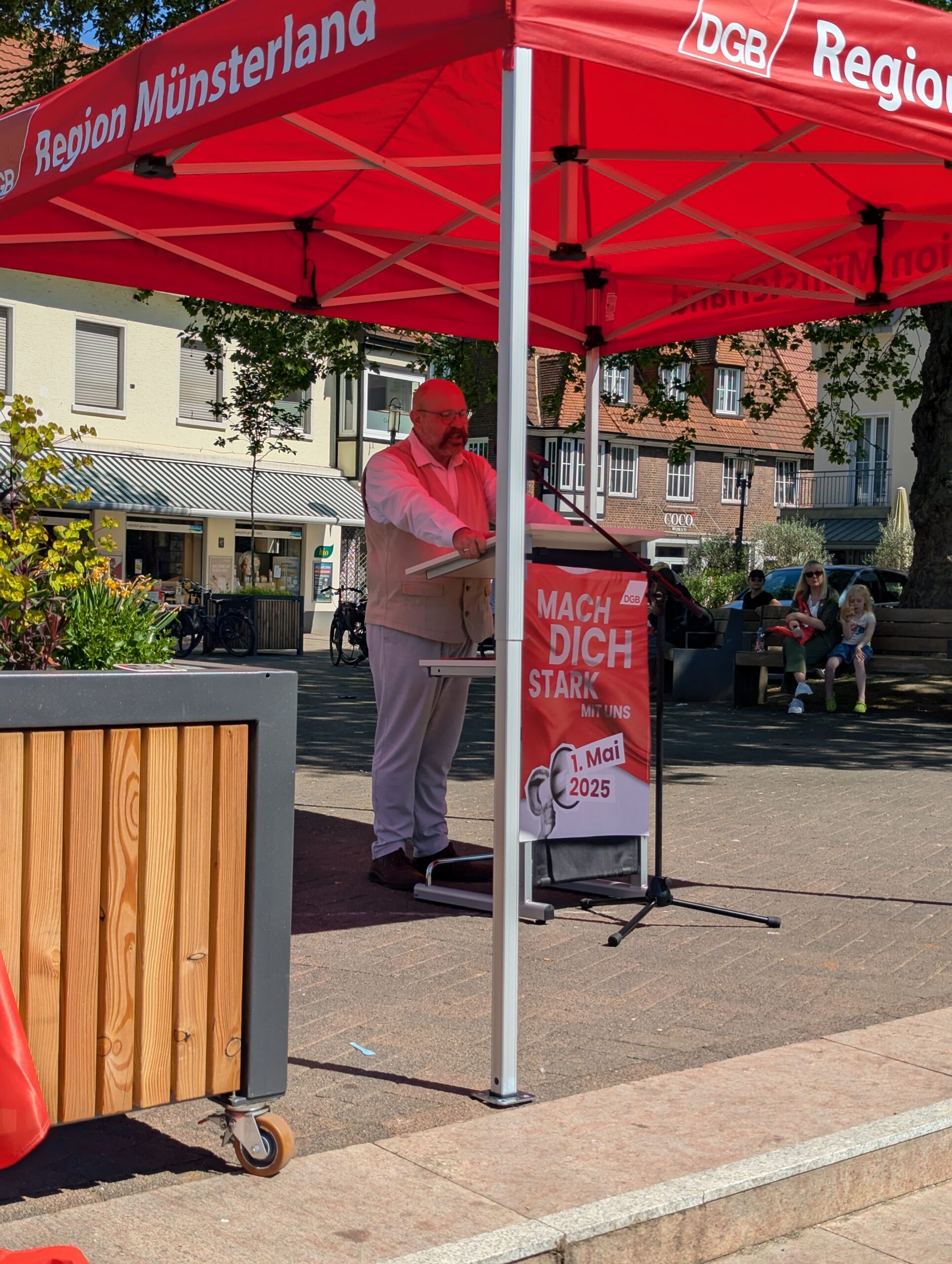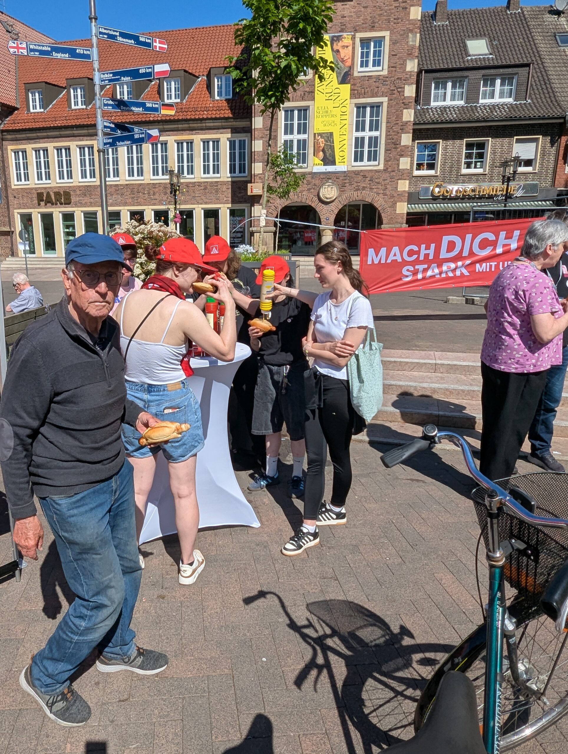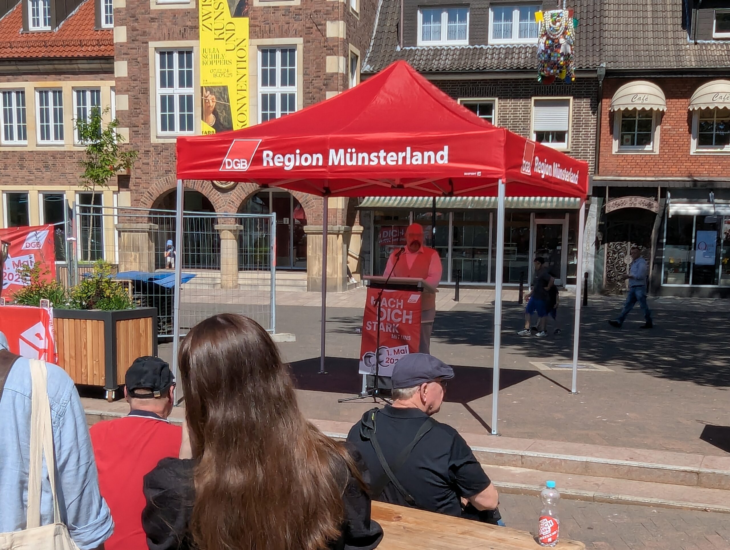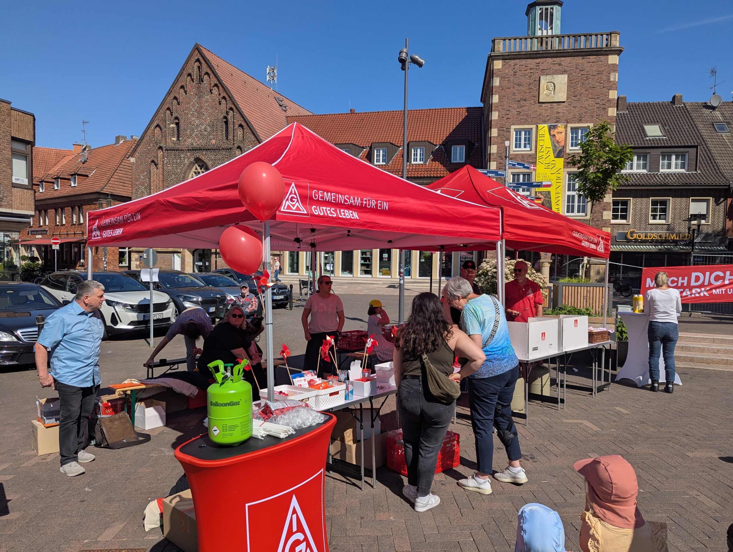 Die neue Bundesregierung steht kurz vor dem Start. Der 1. Mai zeigt, welche Erwartungen Beschäftigte und Gewerkschaften jetzt an die Politik haben. Unter dem Motto „Mach dich stark mit uns!“ versammelten sich zum Tag der Arbeit Zigtausende in zahlreichen Städten. Auch in Bocholt zeigten Gewerkschafterinnen und Gewerkschafter Flagge für ihre Forderungen zum Tag der Arbeit.