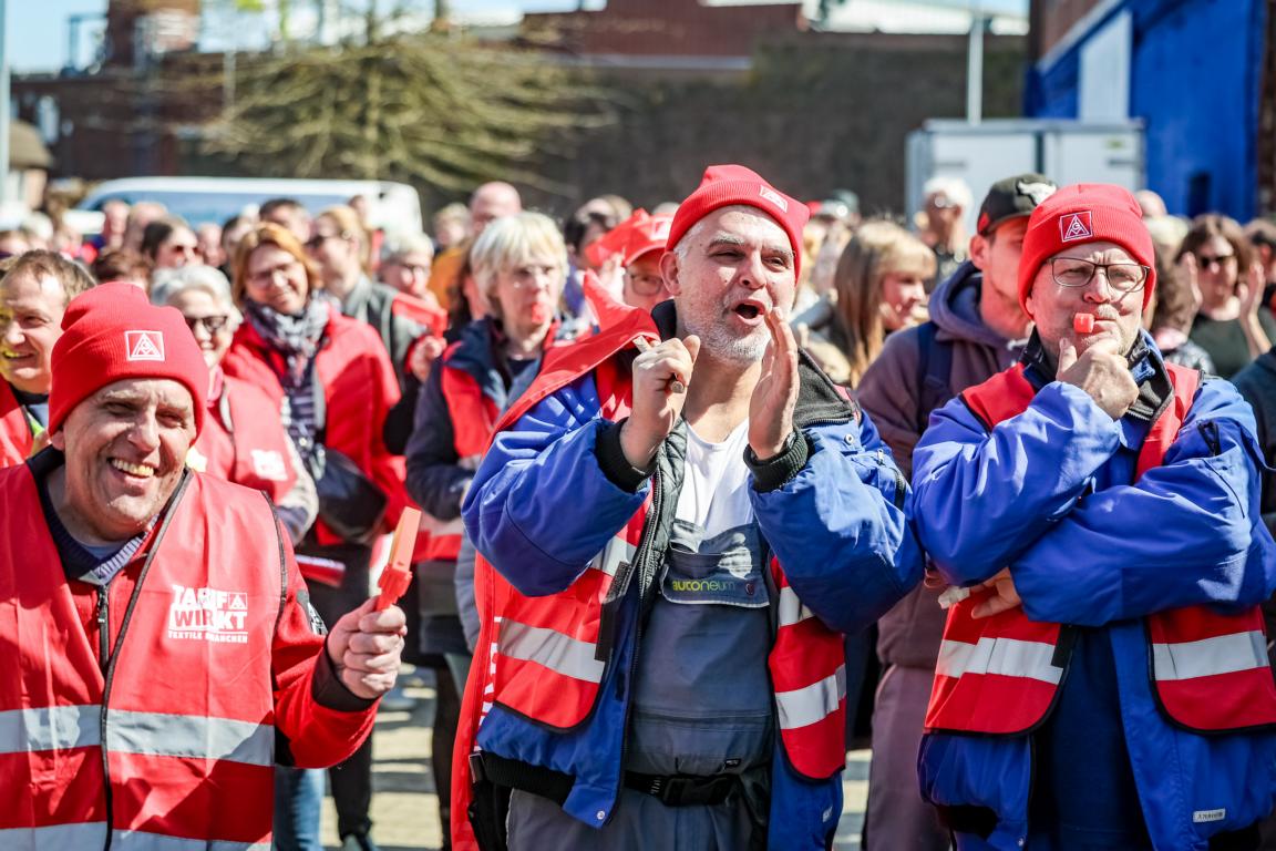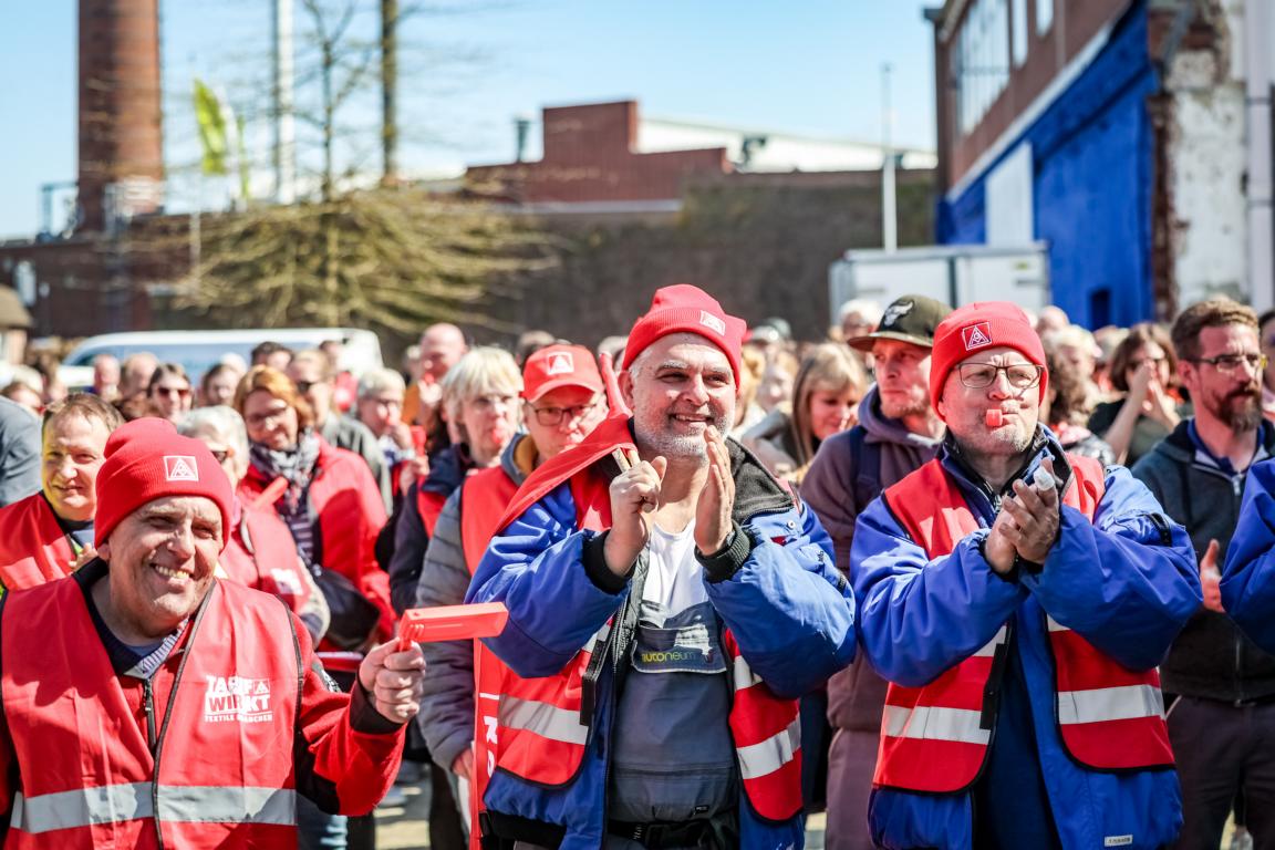 22.000 Textilerinnen und Textiler machten in den letzten Wochen bei Warnstreiks und Aktionen Druck. Mit dabei: Unsere Kolleginnen und Kollegen der IG Metall Bocholt. Mit Warnstreikaktionen in Borken, Emmerich und Vreden und unserem gemeinsamen Aktionstag in Bocholt haben wir den Druck auf die Arbeitgeberseite kontinuierlich erhöht. Mit Erfolg! Am 11. April konnte der Durchbruch in den Tarifverhandlungen der westdeutschen Textil- und Bekleidungsindustrie erzielt werden.